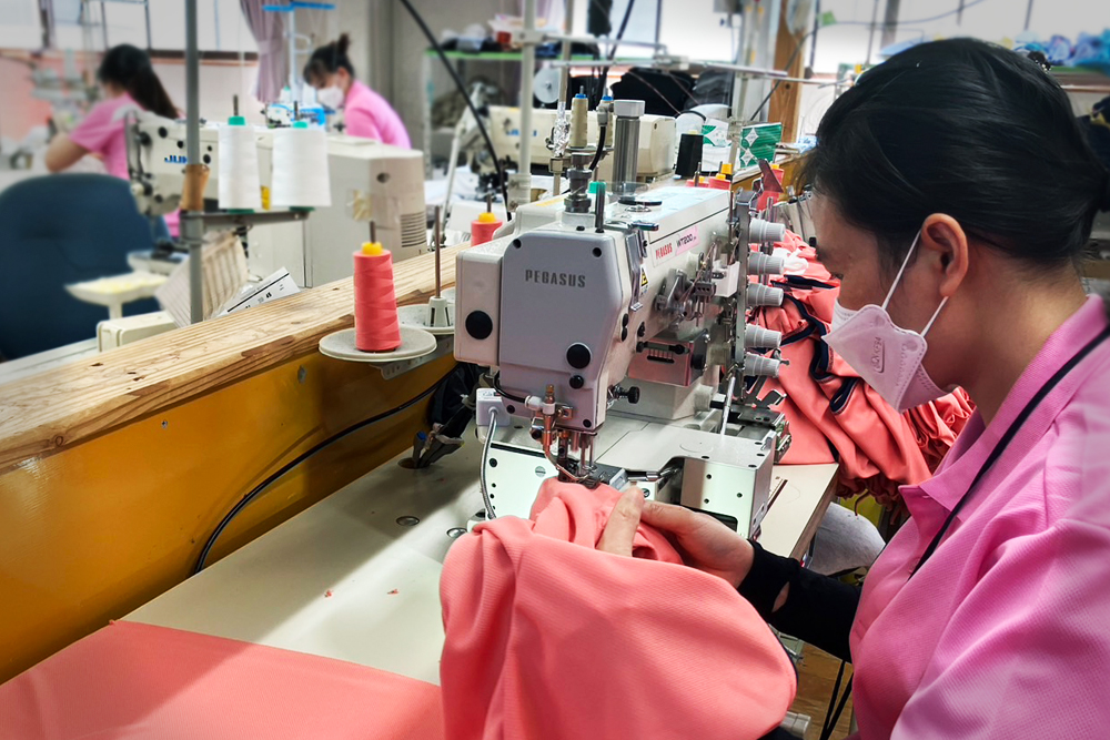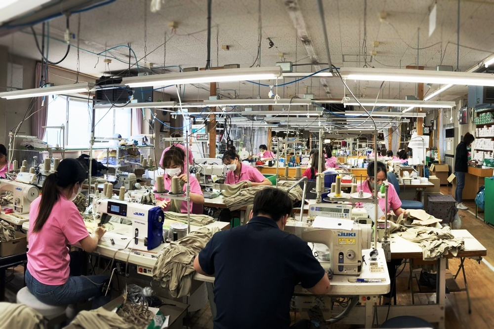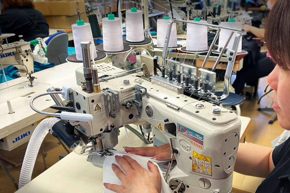 自社工場を中心に、オールメイドインジャパンの縫製を行っております。